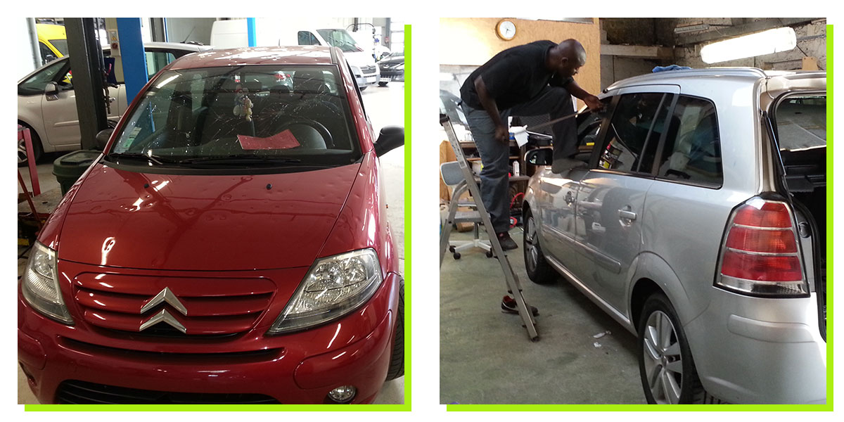 Il s’agit de réparer des impacts en tous genres : coups de portiportières et caddies, projectiles, balles et impacts de grêle notamment.